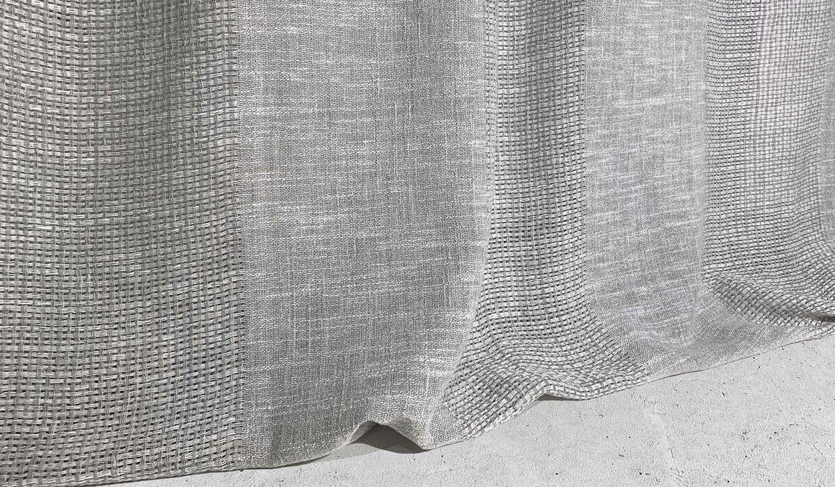 The mix of natural and man-made yarns offer a characterful semi plain drape with enhanced practical performance and a soft relaxed fall.
