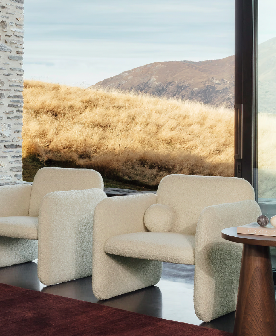 Fleece explores our symbiotic relationship with the land. Inspired by the abundance of sheep that roam vast New Zealand plains, this tactile upholstery replicates New Zealand’s revered woolen fleece in a 100% synthetic composition. Nature has become the great unifier and healer in a period of upheaval; with its dense curled pile, Fleece offers a sense of comfort perfectly suited to curvaceous furniture which allow one to cocoon within the home.