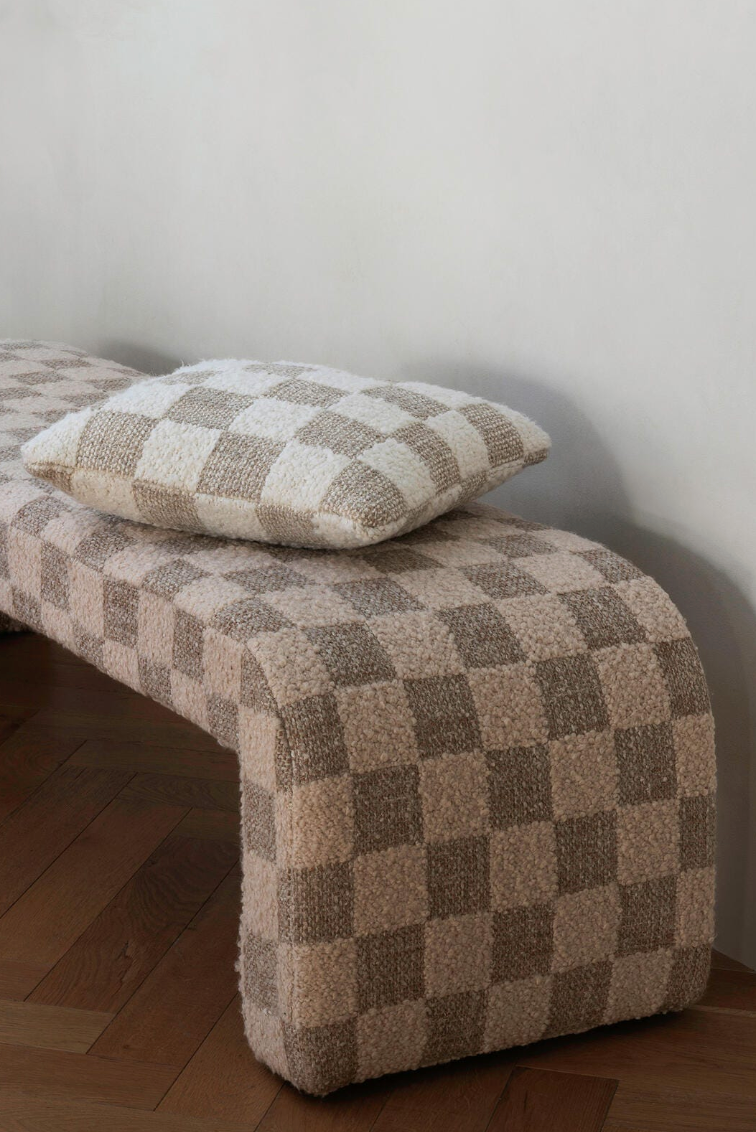 The extreme tactility of sumptuous boucle and heathered yarns add surface appeal and softness, reimaging a simple check. Woven in Italy, Quadro Boucle is suitable for light duty upholstery and an array of textile accessories. Available in two colourways: Chalk blends golden linen yarns with fresh ivory, whilst Pumice embraces rusted tones, mixing warm calico boucle with aged bronzes.