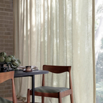 Named after the influential style of mid-century architect Ludwig Mies van der Rohe, Miesian is a polyester cotton blend sheer with an organic, subtly crushed surface texture and slubby nature. Miesian is available in a curated colour palette developed by the James Dunlop studio.