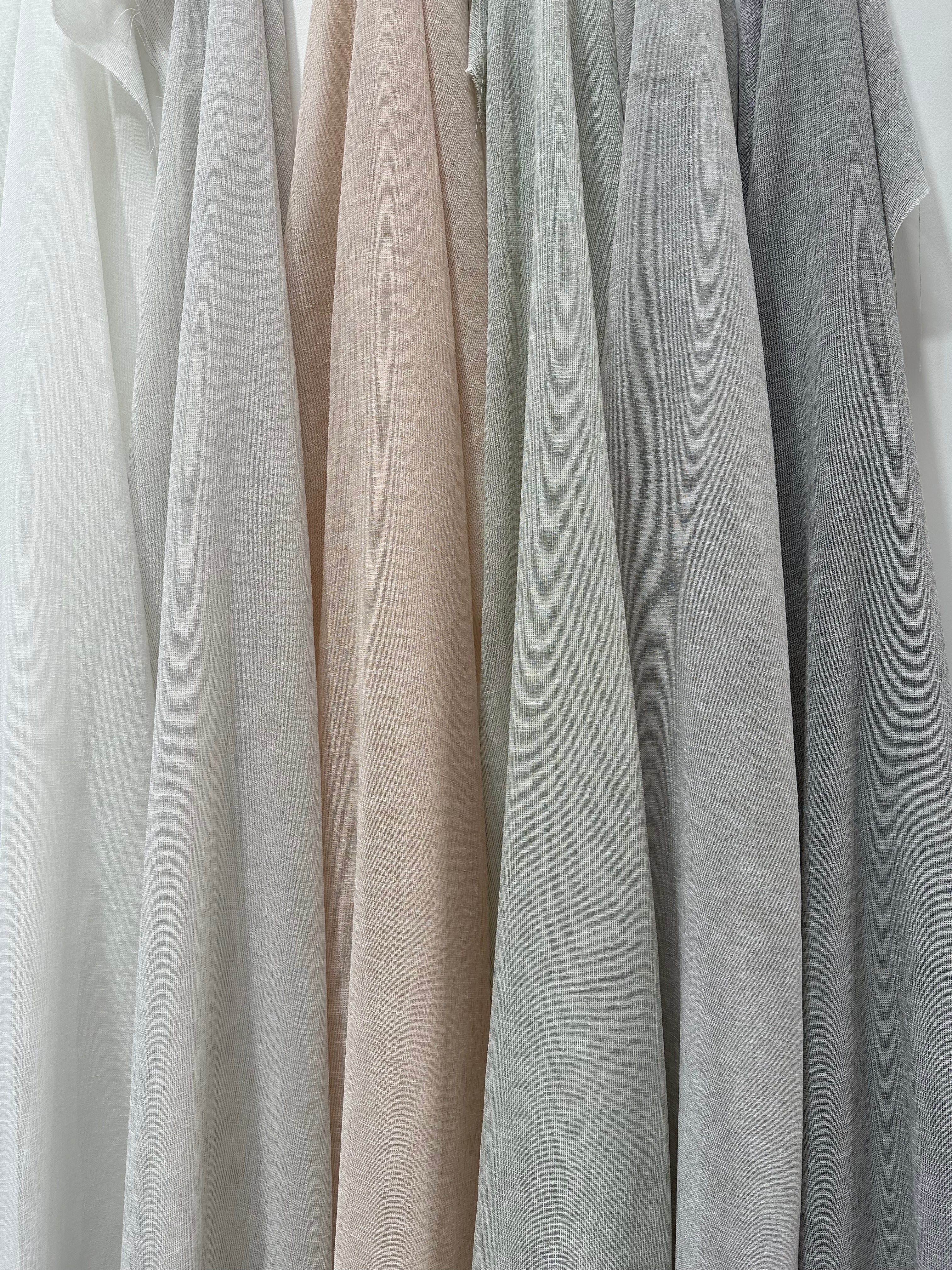 Inspired by uninterrupted panoramic vistas, where simple sheers frame the view. Seaview is our third release within James Dunlop’s Panoramic Collection, a growing offering of timeless extra wide sheers that respond to increasing architectural ceiling heights. Woven at 350cm/ 138inches with a weighted selvedge, and yarn dyed to emulate textured linen with the durability of being 100% polyester. Seaview has been developed within the James Dunlop Studio to offer a curated palette of complex neutrals and fresh decorative mid tones reflecting the colours of our coastline. Woven in Turkey, Seaview meets both local and USA fire retardant standards, ensuring this timeless and tactile sheer has endless specification opportunities for both residential and commercial application.