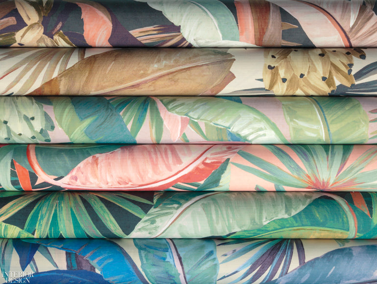 Surround yourself in a tropical oasis all year round with this dramatic painterly design by Catherine Martin. Coordinating seamlessly alongside Mokum’s latest high performance collection, Club Tropicalia and Catherine Martins former indoor range, Majorelle