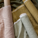 Woven in Turkey, Kyoto is James Dunlop’s signature 100% linen wide width drapery. Trusted for its quality and loved for its elegant tumbled finish, Kyoto is yarn dyed, washable and has been re coloured within the James Dunlop studio. Classic new shades of fresh white, duck egg, blush, pistachio and ink sit alongside rich earthen hues of oxide, rust, truffle and walnut to complement Kyoto’s top selling neutrals. In it’s extensive new decorative colour palette, Kyoto will continue to bring a sense of relaxed luxury to the home.