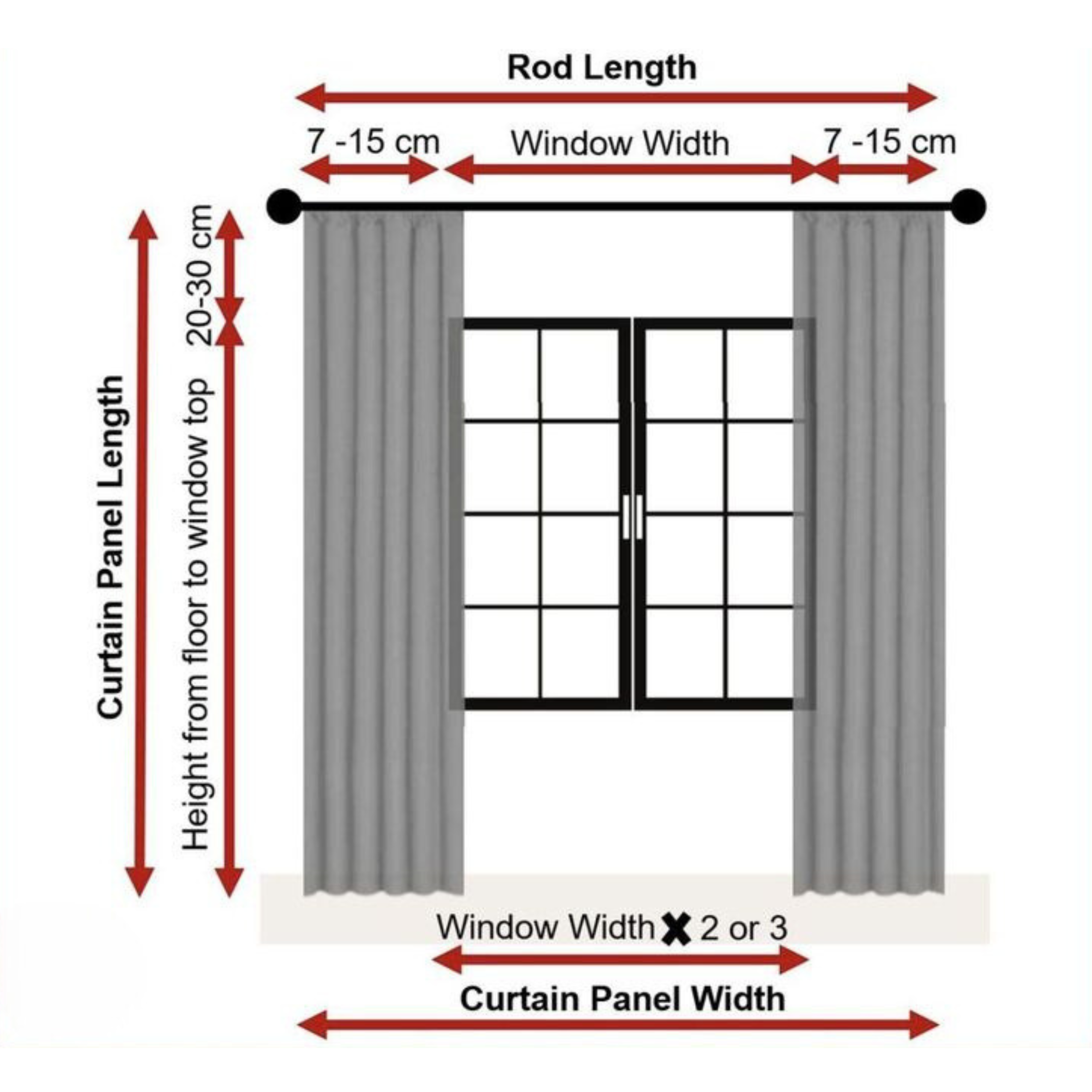 For Floor-Length Curtains: Measure from the top of the curtain rod to the floor. Add 5-7.5cm if you want the curtains to pool on the floor.